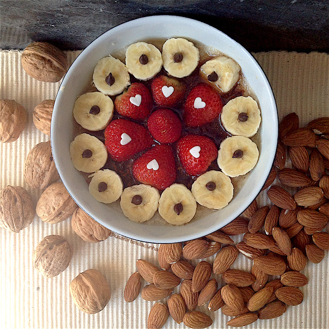 Misture a água com a aveia e leve ao microondas à potência máxima (cerca de minuto e meio) até levantar fervura (esteja atenta pois levanta fervura muito depressa). Retire, misture e volte a colocar no microondas mais 30 segundos ou até levantar fervura novamente.