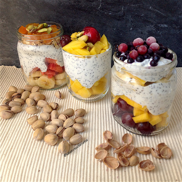 Por cima das papas de aveia polvilhe com canela, deite o mel e de seguida o iogurte. Depois disponha todos os outros ingredientes.