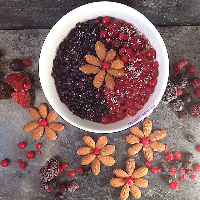 2 mãos cheias de frutos vermelhos congelados (framboesas, mirtilos, amoras, groselhas)